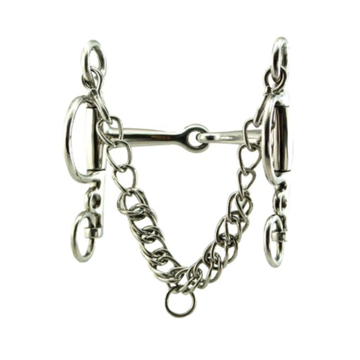 Pelham bits are usually suited to horses with short, thick jaws. These horses will have difficulty in coping with a bit and a bradoon of the double bridle. This comes with a 2 1/2 inch shank and is 5 inches overall. stainless steel curb chain and curb hooks included.