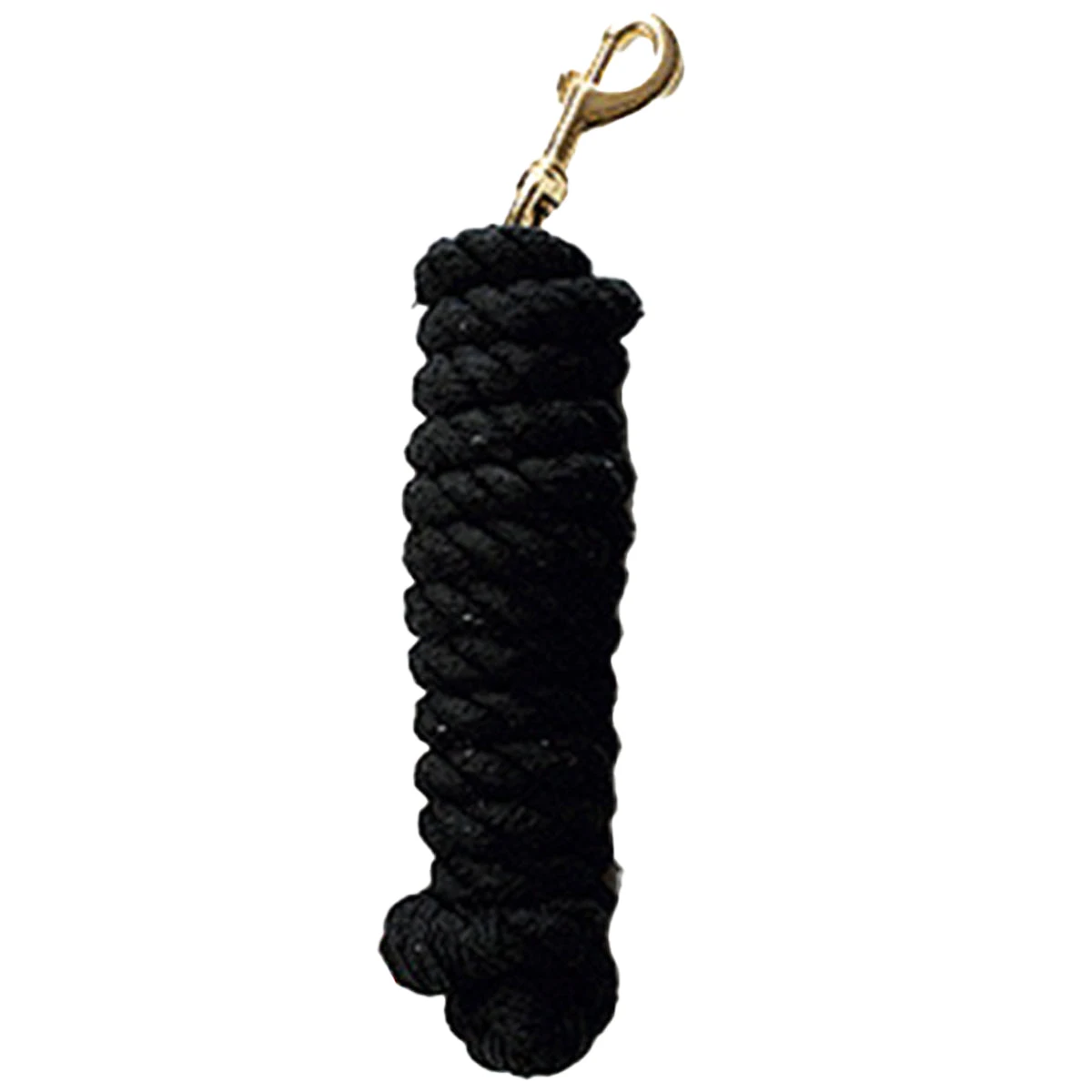 Comfortable, yet strong top-quality Cotton Lead Rope is 3/4″ x 10 feet long. Solid brass eye bolt snaps with round swivel woven into the end.
