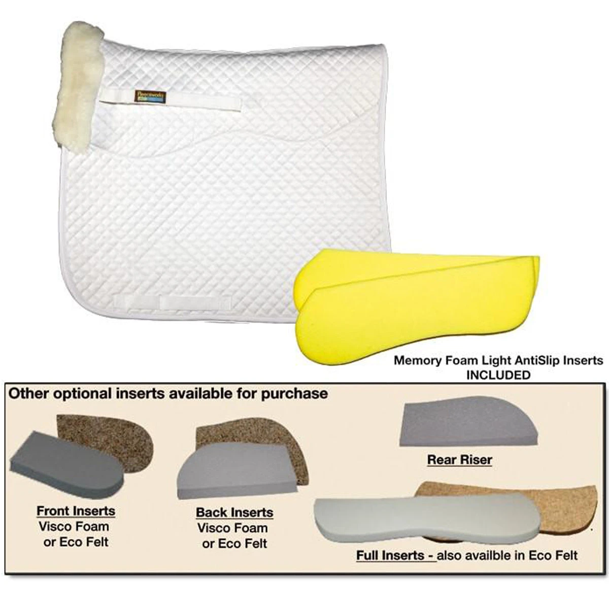 Fleeceworks Perfect Balance Technology incorporated into a quilted dressage square pad. The combination of Therawool™ and the multiple optional inserts make it a must-have. Two sets of our Memory Foam Light Anti-slip inserts are included.