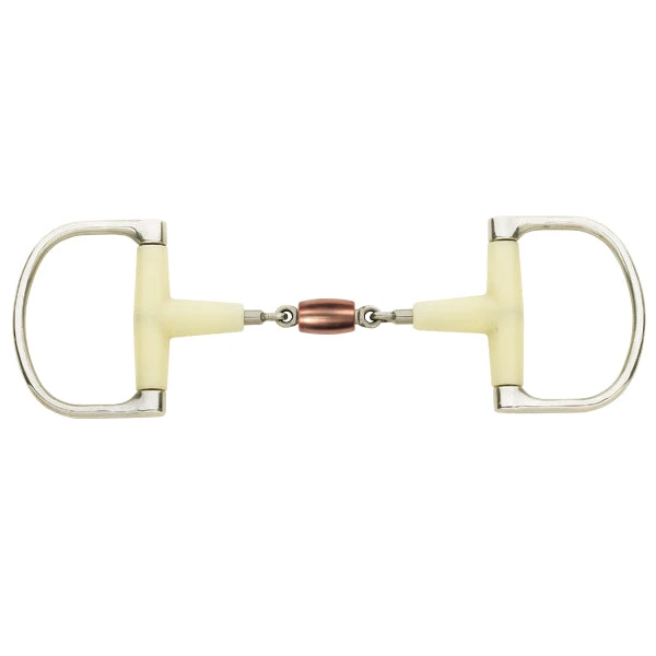 Pure copper is a soft, warm metal. By using 99.9% pure copper in the center of the mouthpiece, bit acceptance is improved. The taste of copper encourages horses to salivate and keep a moist mouth. Bits made of copper can have a very positive effect by promoting relaxation and softening. Excellent bit acceptance can be achieved by this combination of Apple scented space age polymer mouthpiece and pure copper center roller.