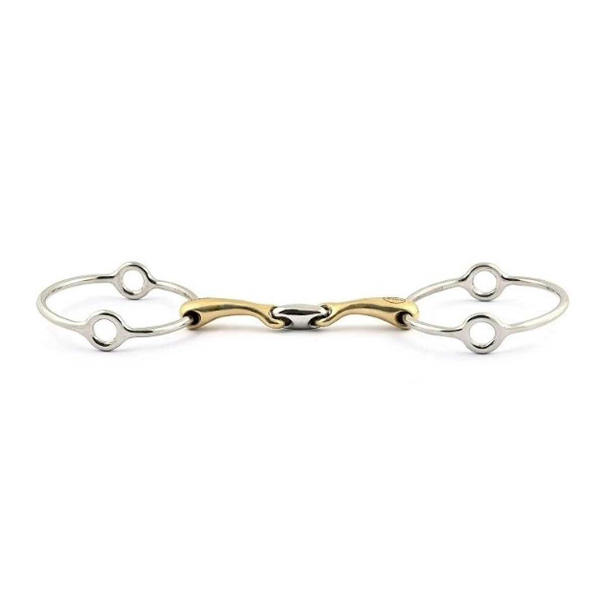 This bit needs special cheek pieces and can be used directly with two reins, with bit loops or with four reins. The self-blocking mechanism will make this bit action stronger if the horse takes a too strong contact. This bit has an action on the horse balance. It makes the horse rebalance and transfer its weight on the hindquarters. The larger the rings are, the stronger the gag action is.