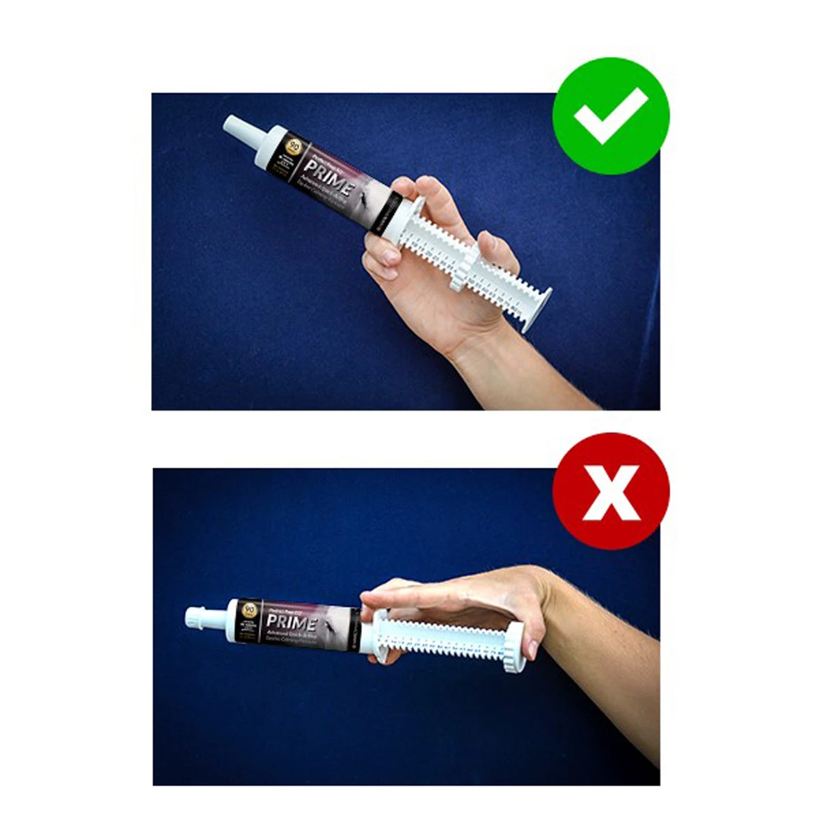 Suggested Use: For maximum effect, administer 60cc (one full oral syringe) 90 minutes prior to performance. For moderate effect, administer 30cc (one half oral syringe) 90 minutes prior to performance. Adjust for desired results. Effects begin within 1 hour and last up to 6 hours. Feed carefully to assure swallowing. Flows best at room temperature.