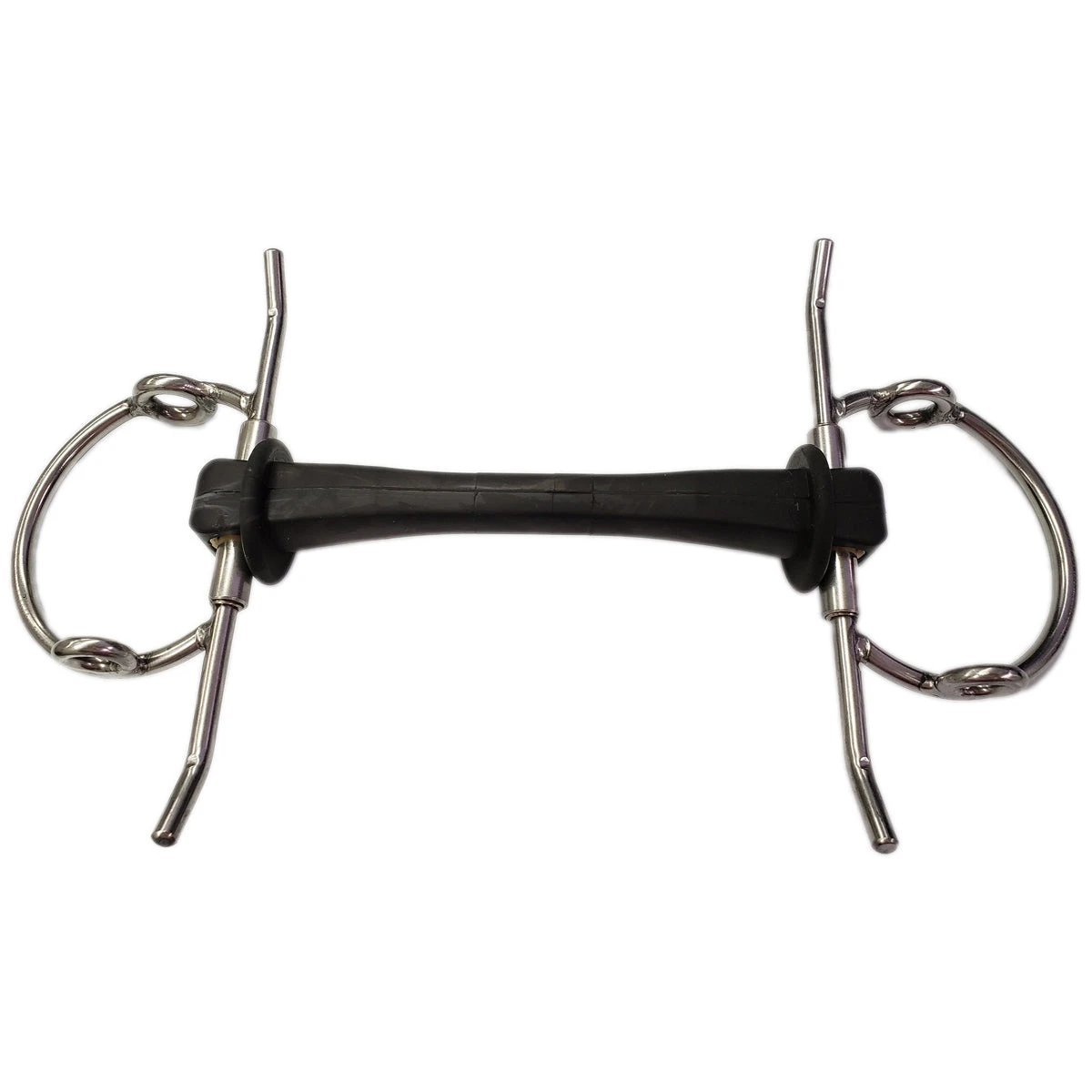 The gag bit is a bit whose side pieces have two bars. This shape creates more pressure on the horse’s cheeks (even more than with a D-bit). This makes a horse easier to maneuver and a bit cannot be pulled through the mouth so easily. This makes the full cheek snaffle a fine bit to train young horses. A full cheek is stable and quiet in the mouth.
