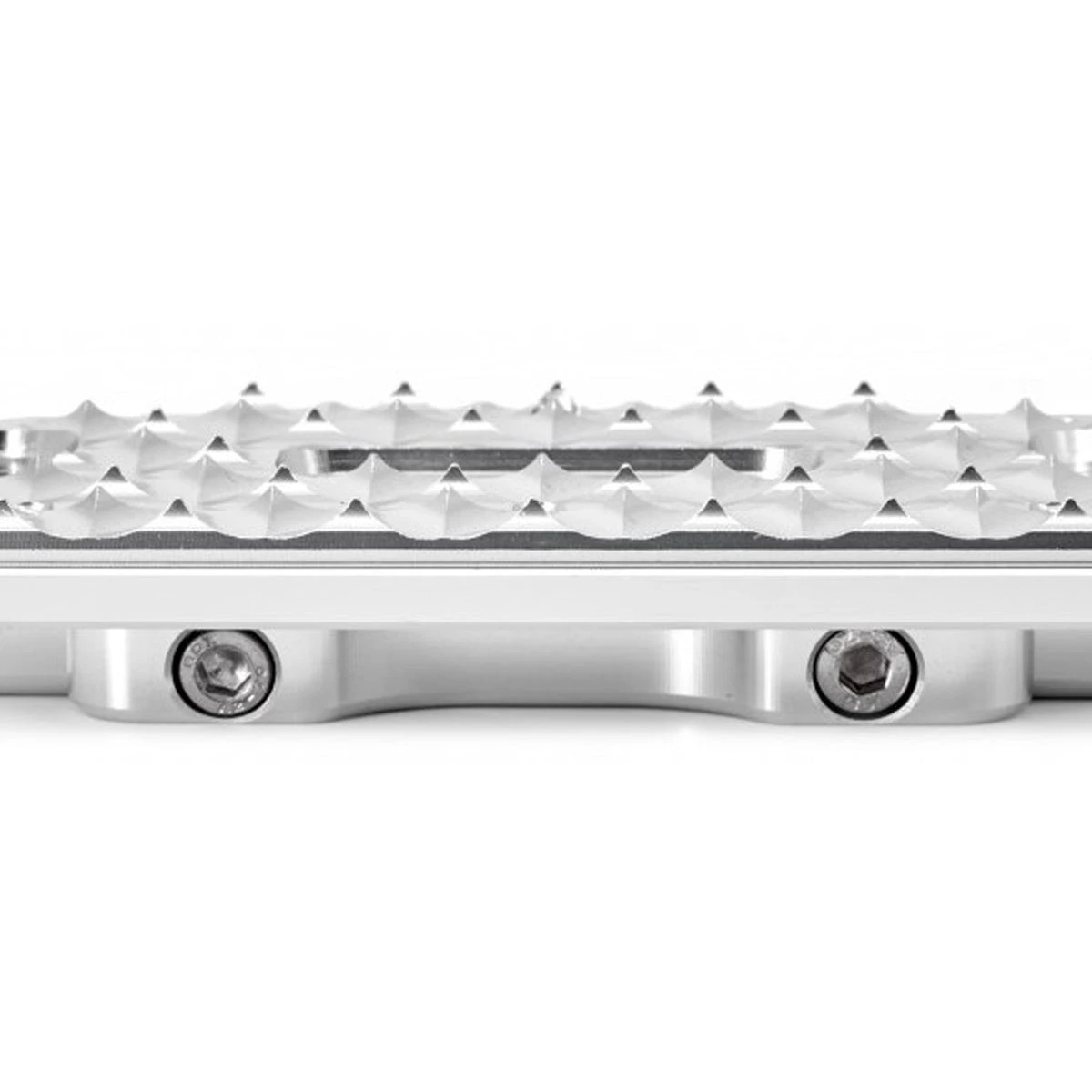Made in Italy, the patented Turin Tech Stirrups are made from aluminum billet and fitted with stainless blocked screws. Designed for the Hunters, the replaceable treads are treated with nano-ceramic coating, while the rings are treated with a 20 micron adonization to preserve their beauty. The treads feature a 4 degree angle to encourage proper positioning, and they are aggressively patterned to provide grip in any weather and footing conditions. Strategically placed stirrup leather eyes provide rider comfort and assist in retrieving lost stirrups. Logo-free branches make this the perfect blend of high tech and traditional sought after for the hunter ring.
