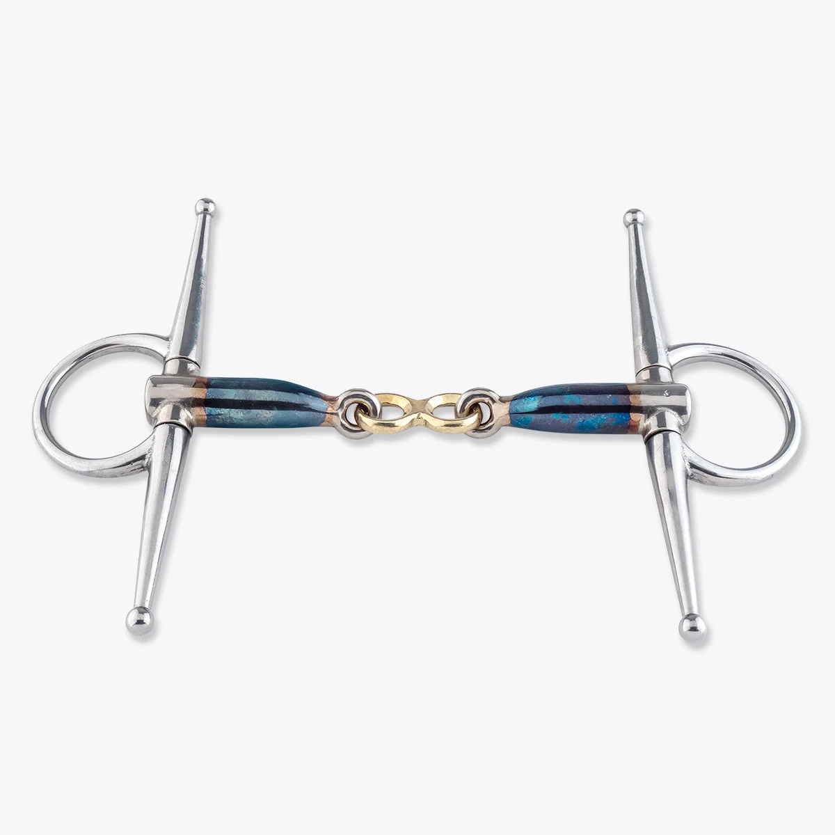 The French link mouthpiece is a double-jointed mouthpiece with a flat insert that exerts equal pressure on the tongue. This mouthpiece has two pivot points, is shaped more to the mouth, and is a bit looser in the mouth.