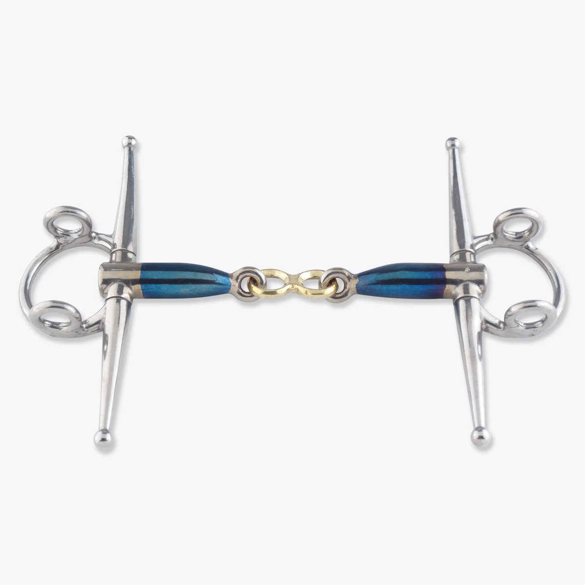 The french link mouthpiece is a double-jointed mouthpiece with a flat insert that exerts equal pressure on the tongue. This mouthpiece has two pivot points, is shaped more to the mouth, and is a bit looser in the mouth.
