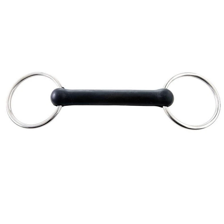 Loose rings and rubber enable flexibility and compassion as the horse becomes accustomed to wearing a bit. A mobile bit which evenly distributes pressure across the tongue and bars of the mouth without disturbing the roof of the mouth. The thicker mouthpiece is softer on the corners and the bars of the mouth. The pressure created by the reins is spread over a larger surface area. The hard rubber mouthpiece offers a warmer and softer option, creating a much milder bit. Ideal for young horses accepting their first bit.